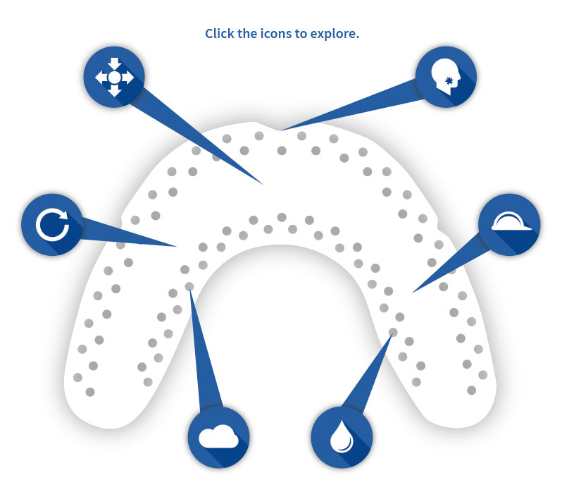 Designed to withstand more impact than a conventional mouthguard, SOVA’s scientifically engineered crumple zones prevent residual force of impact from traveling to your teeth. When a SOVA night guard is properly fitted, perforations oscillate on impact, dissipating grinding forces and guiding those forces into the crumple zones.